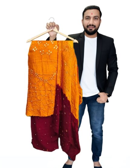 rayon bandhani dress material top bottom dupatta kgmbrand
