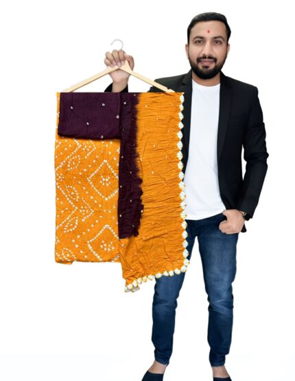 PURE SATTIN COTTON HAND BANDHEJ BANDHANI DRES’S MATERIALS FOR WOMEN 100% PREMIUM QUALITY ONLY FABRIC KGM BRAND