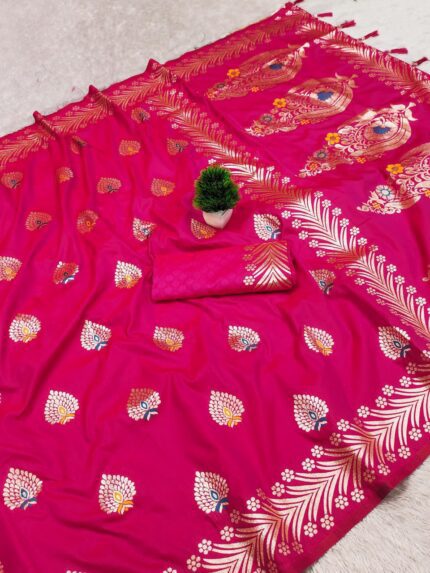 Soft Banarasi Premium Silk Saree | Rich Meenakari Weaving Pallu with Zari Border And Blouse Piece Kgm Brand