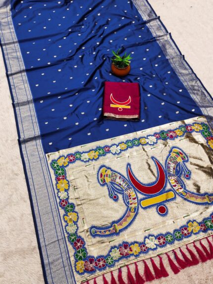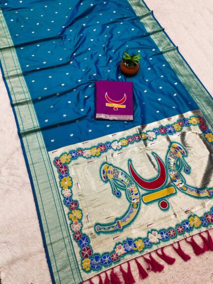 Designer Soft Silk Paithani Saree featuring Rich Zari Weaving & Cultural Motif Pallu With Blouse Piece