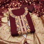 Be the first to review “Designer Roman Silk Unstitched Suit with Heavy Codding Embroidery & Luxurious Jacquard Brocade Dupatta for Festive Wear kgm brand” Cancel reply