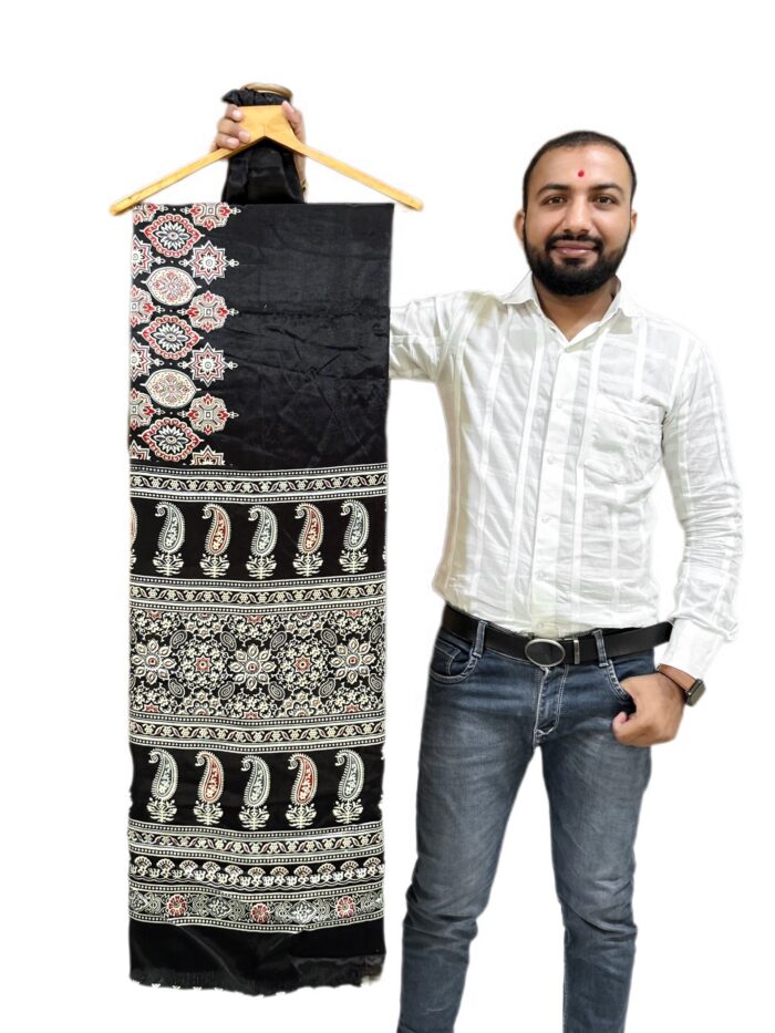 A beautiful and luxurious Soft Silk Saree featuring intricate traditional prints, giving it a rich and ethnic appeal. The fabric is lightweight and drapes effortlessly, making it perfect for both daily wear and special occasions. The vivid colour combinations make this saree a standout piece.