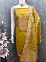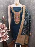 Be the first to review “Festive Roman Silk Dress Material – Embroidered Neckline and Banarasi Dupatta kgm brand” Cancel reply