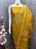Georgette Unstitched Dress Materials with Embroidery Work For Women’s yellow maroon green