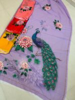 Be the first to review “hand work val and peacock design, weightless print saree kgm brand” Cancel reply