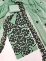 Mendi Green Batik Dress Material For Women pure cotton Top Bottom Dupptta 3 piece