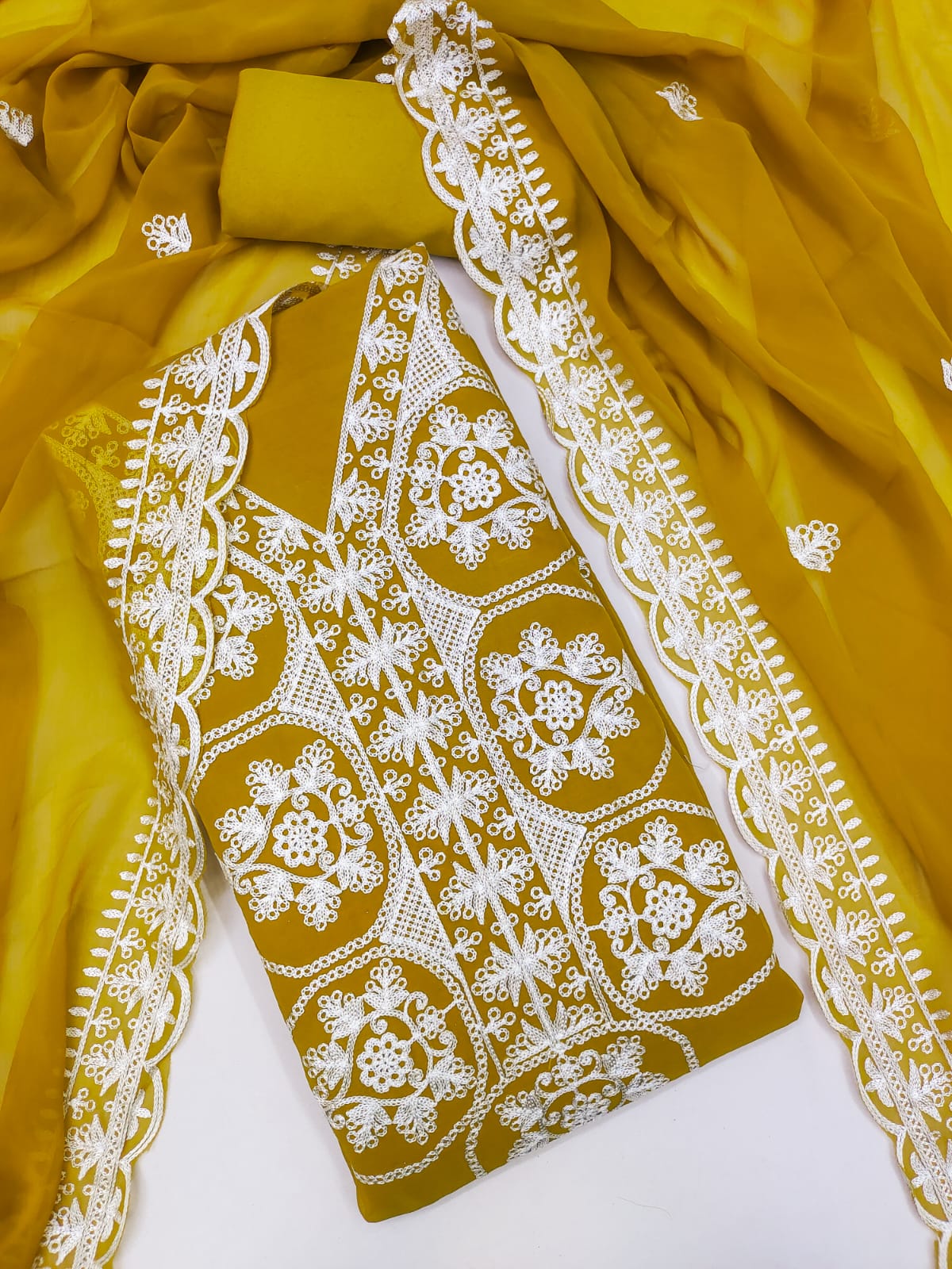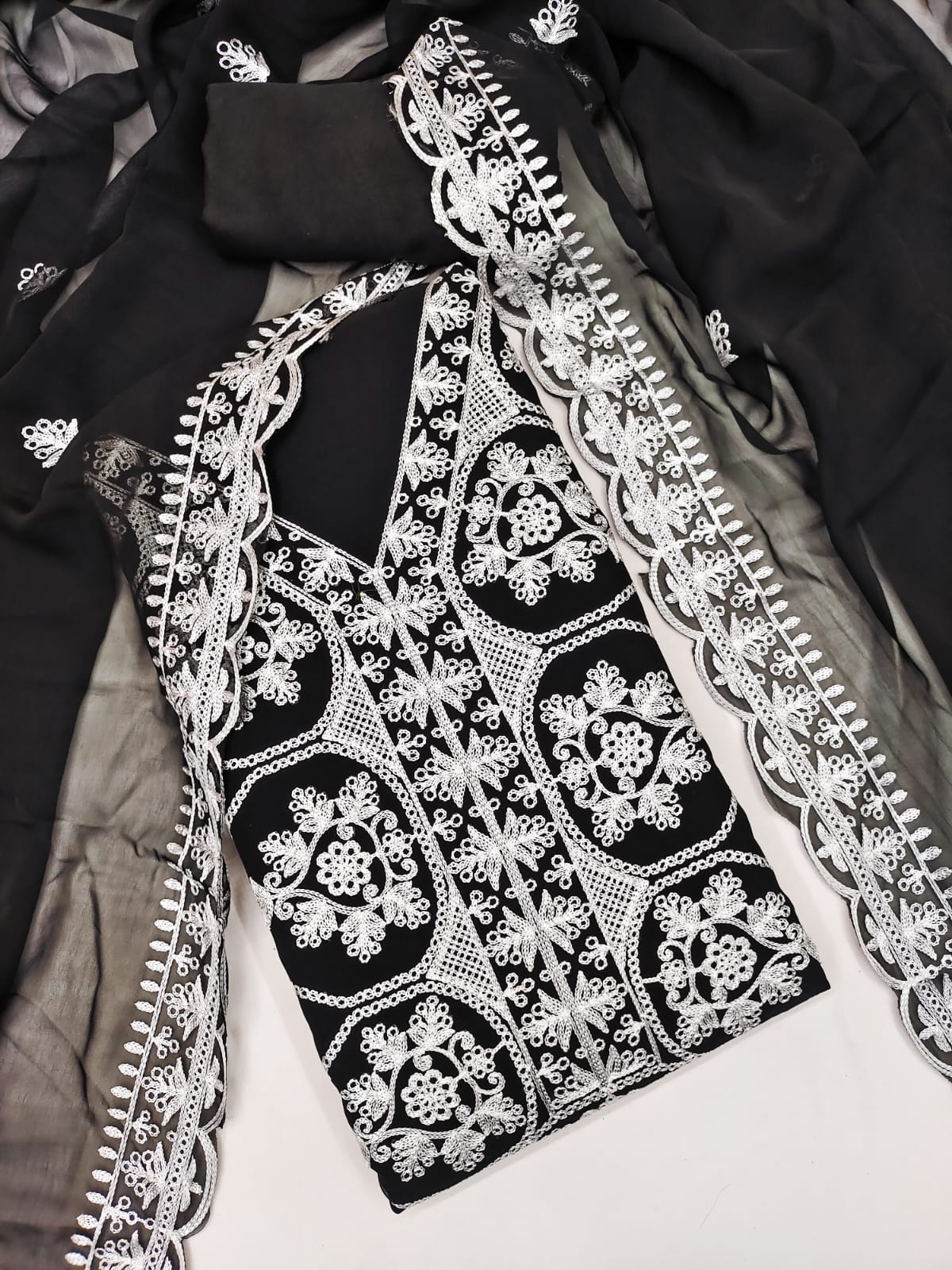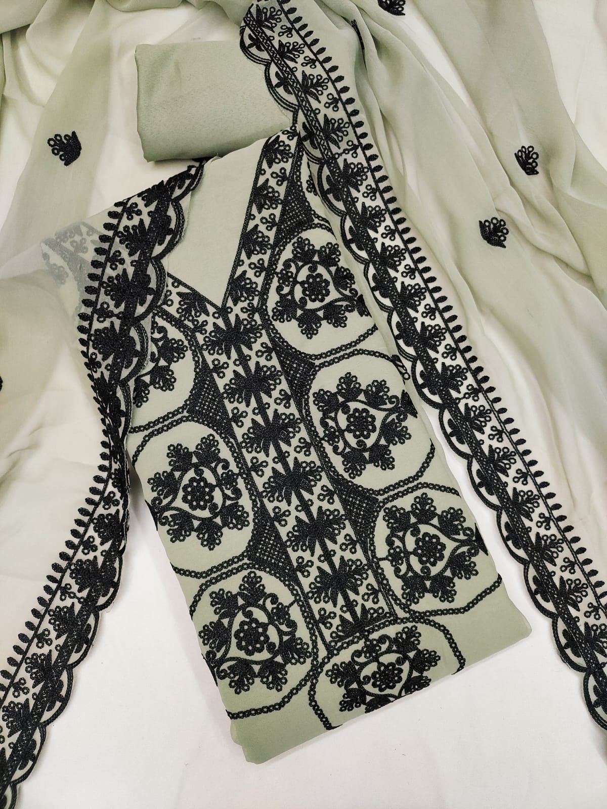 Home » Shop » Unstitched Dress Material » Heavy Multi Aari Work Georgette Suit Set with Santoon Inner/Bottom kgm brand