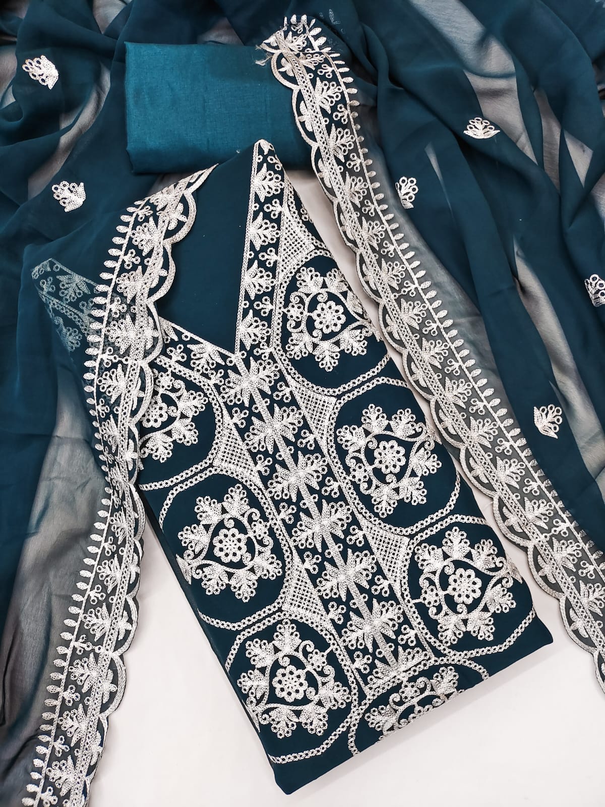 Heavy Multi Aari Work Georgette Suit Set with Santoon Inner/Bottom kgm brand