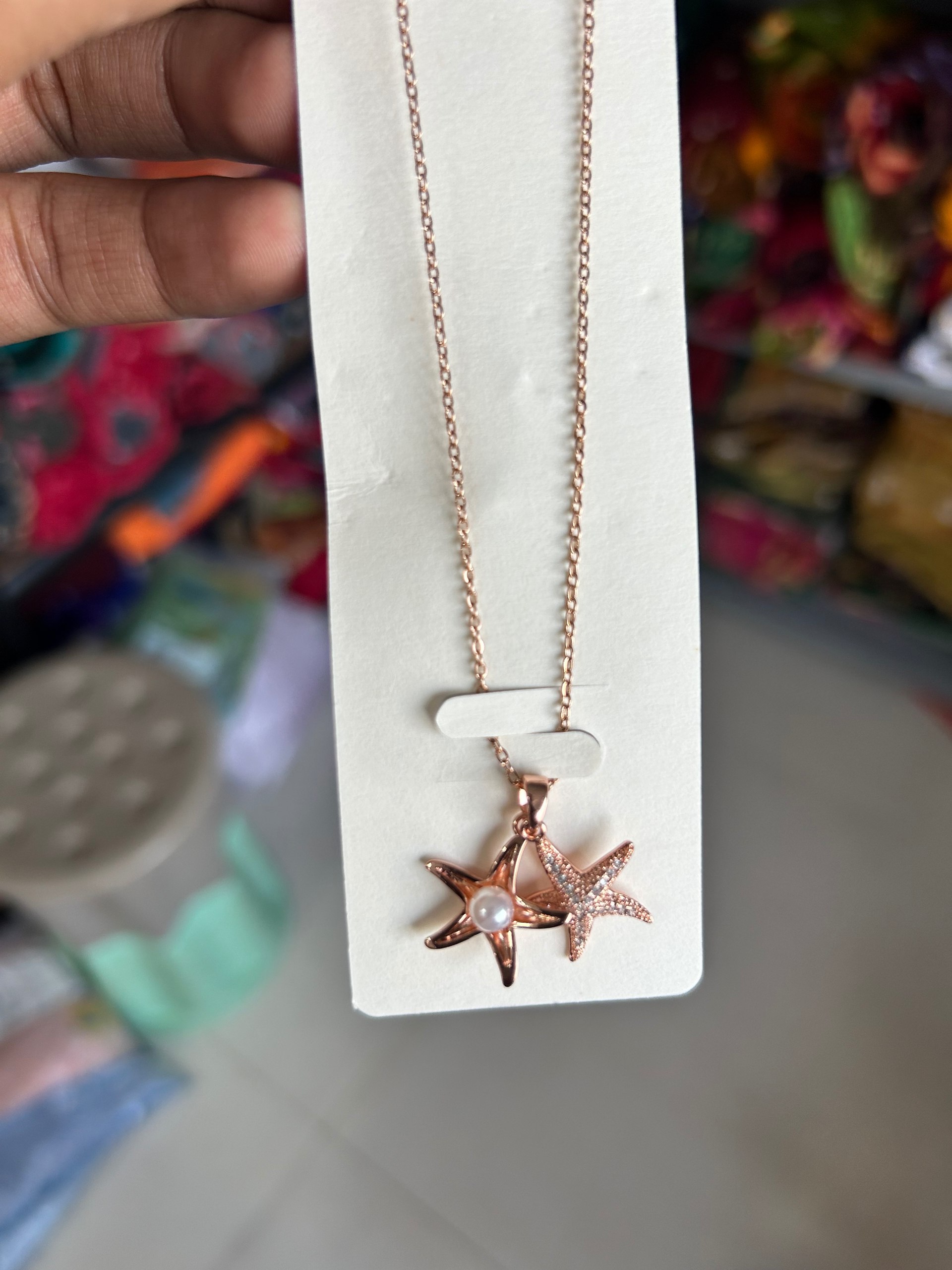 KGM Brand Sea Star Pendant with Chain – Sparkling American Diamond Necklace for Women
