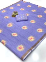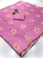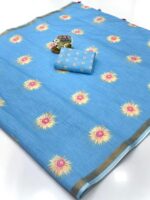 Linen Cotton Sarees with Blouse – Pista, Blue, Sky Blue, Black, Pink