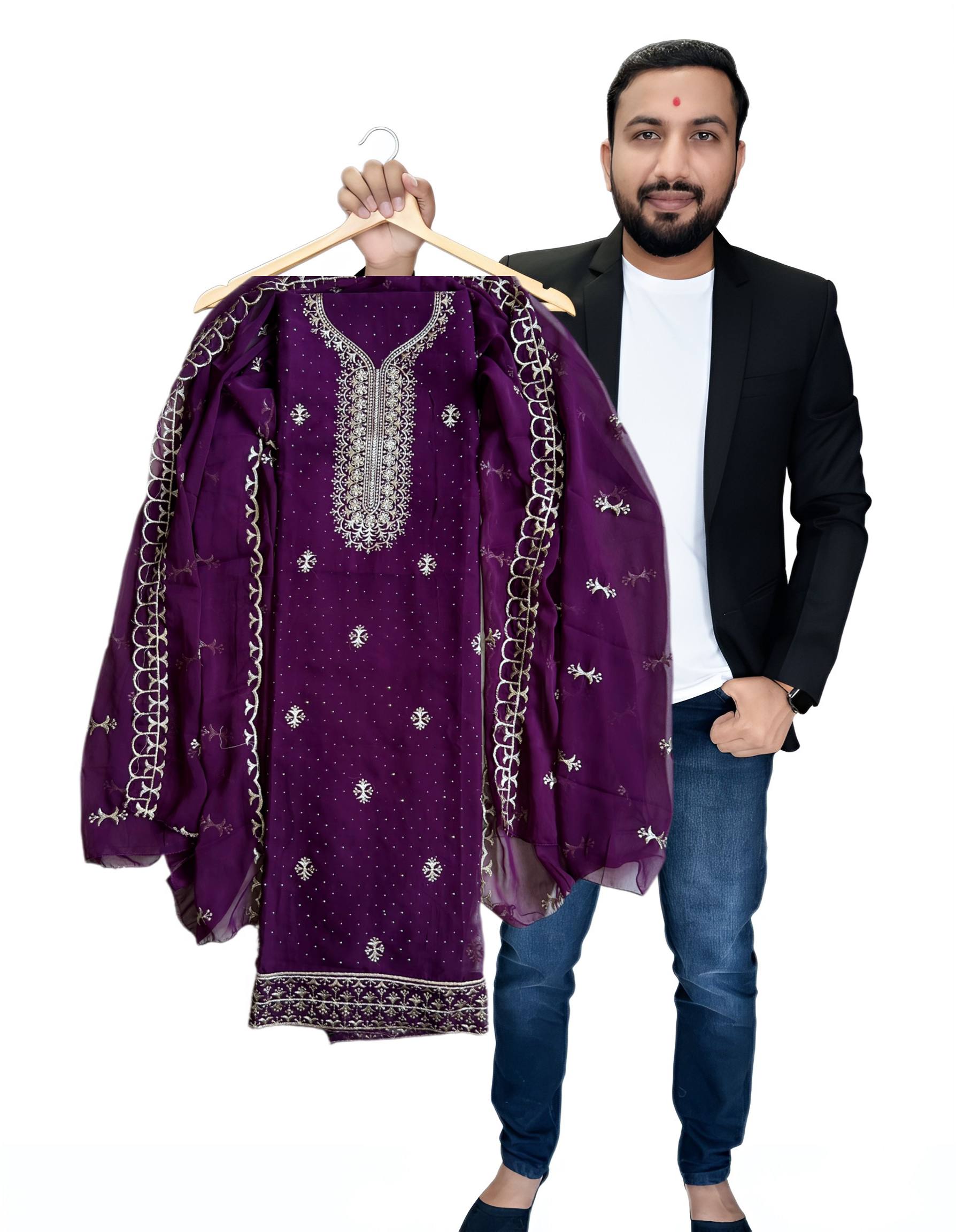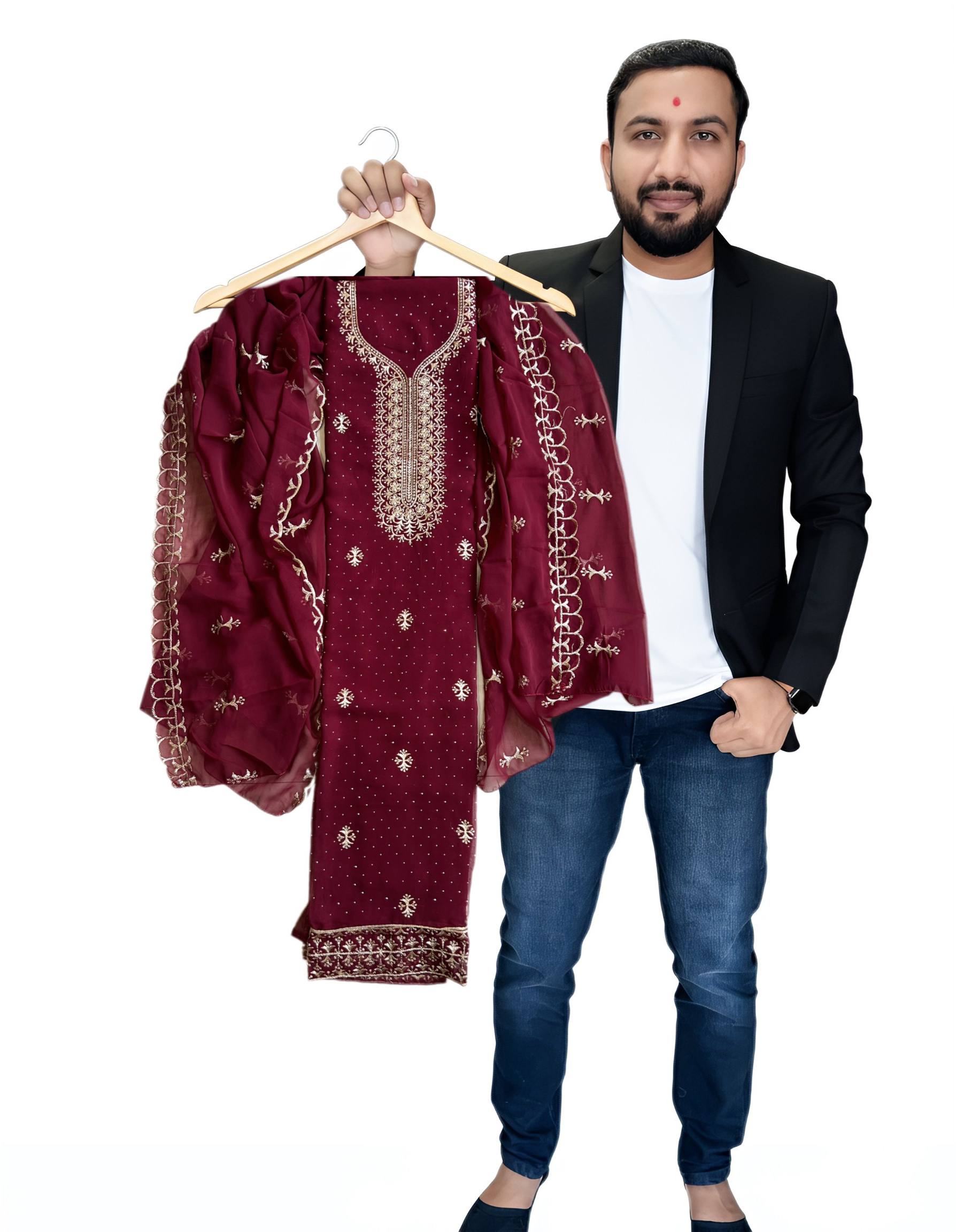 Georgette Multi Sequence Work Unstitch Dress Materials Pakistani suit wine