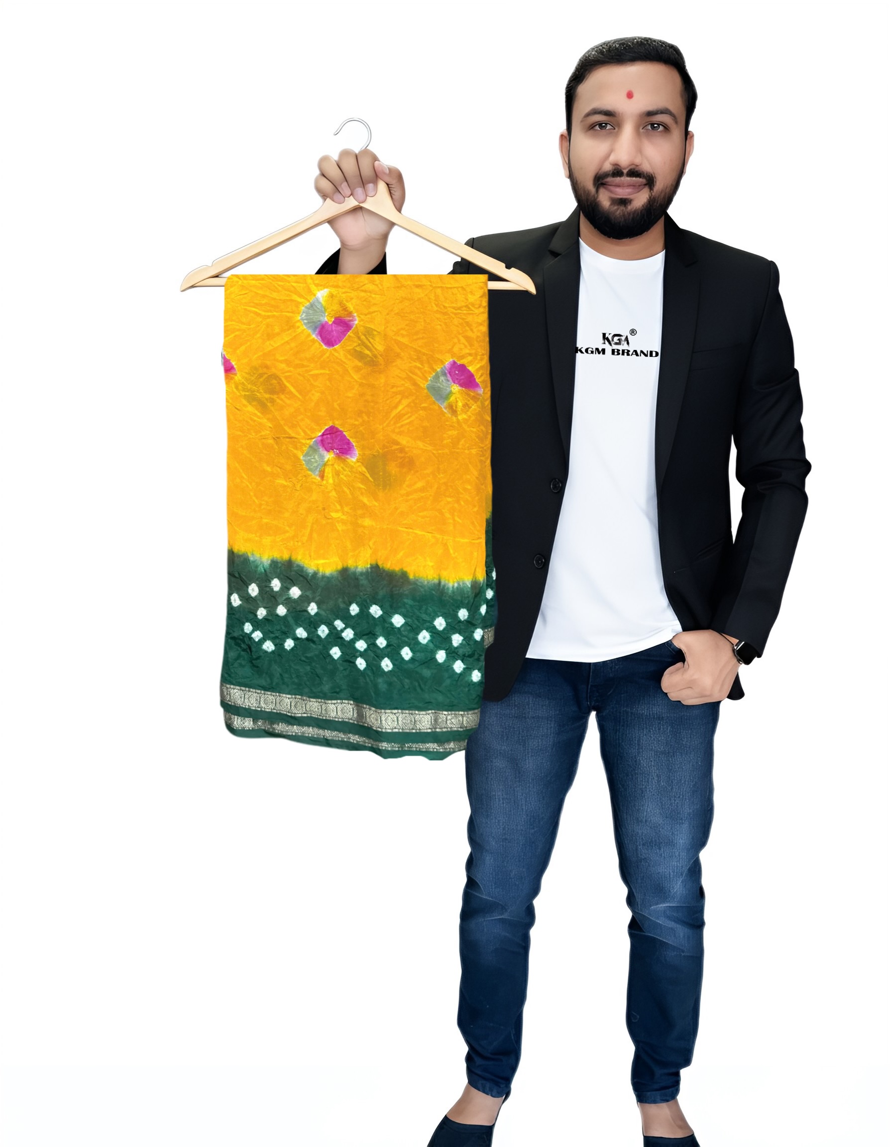 *KGM BRAND Presenting our Collection of Creative Bandhej Bandhani, Jequrd, Suit, Panatar, Patola This Saree Will Surely Give You an Outshining Graceful Look That Will Attract The Attention Of One and all. Apt for any heavy wear – sangeet, wedding collection, family functions. Pair it with heavy beads – and you are all set for a glamorous fascinating look