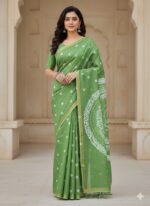 Home » Shop » Printed Sarees » New Collection Lightweight Bandhani Saree in Smooth Linen Fabric | Rich Flower Pallu & Digital Bandhej Blouse| festiv and party wear | kgm brand
