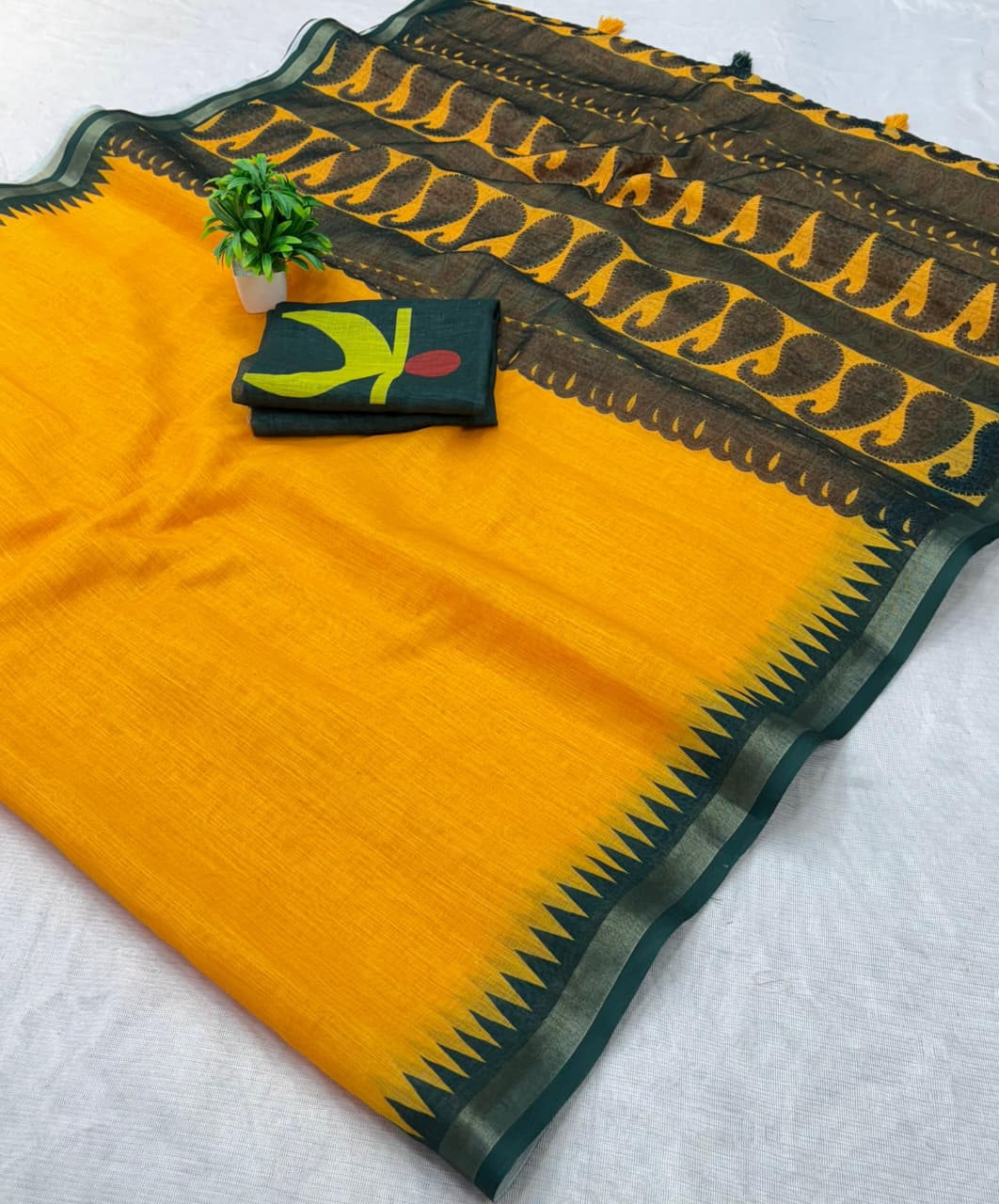 Linen Cotton Sarees with Blouse – Pista, Blue, Sky Blue, Black, Pink – Black