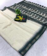 Linen Cotton Sarees with Blouse – Pista, Blue, Sky Blue, Black, Pink – GREY