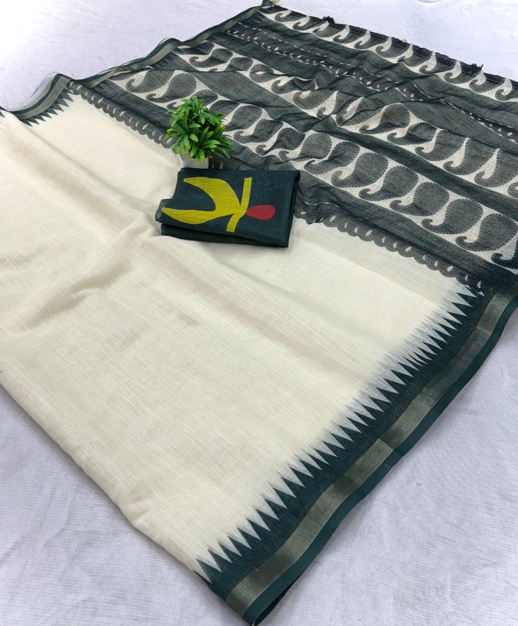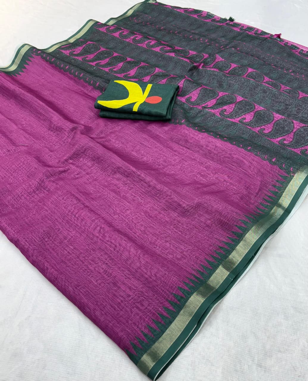 Linen Cotton Sarees with Blouse – Pista, Blue, Sky Blue, Black, Pink – CREAM