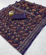 Linen Cotton Sarees with Blouse – Pista, Blue, Sky Blue, Black, Pink – BLUE