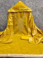 Premium Roman Silk Suit with Heavy Embroidery & Woven Silk Dupatta (Unstitched) kgm brand