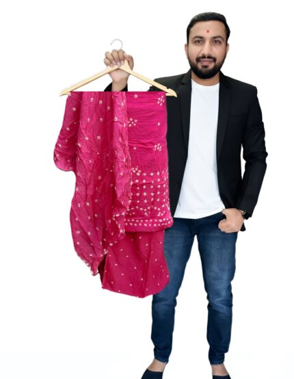 Single Color Bandhani Dress Material For Women pure cotton Top  Bottom Dupptta 3 piece kgm brand pink