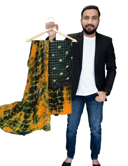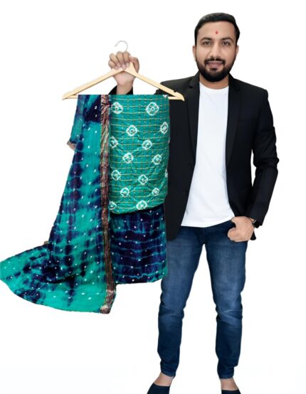 Be the first to review “Pure Cotton Hand Bandhej Bandhani Dress Material Top+Bottom+Dupatta – Vibrant Colors Kgm brand” Cancel reply