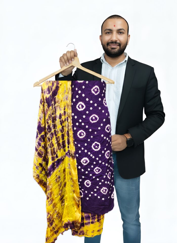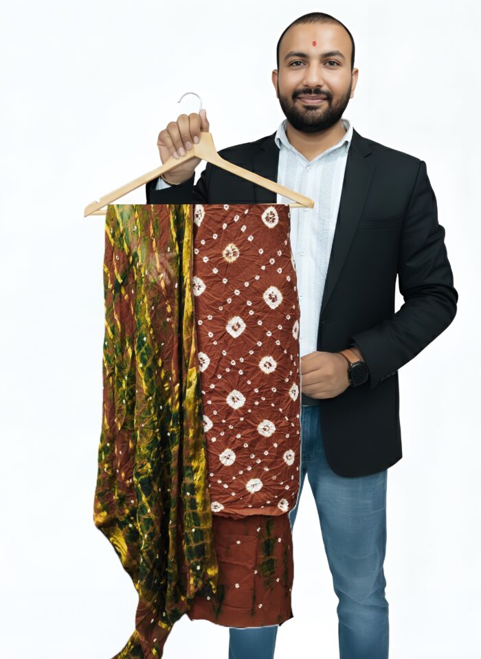 Home » Shop » Bandhani Dress Materials » Pure Cotton Shibori Bottom Bandhej Bandhani Dress Material For Women Suit Kgm Brand Wholesale Color