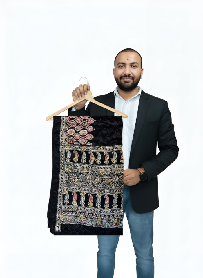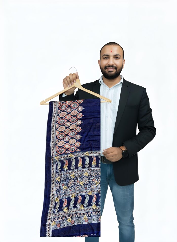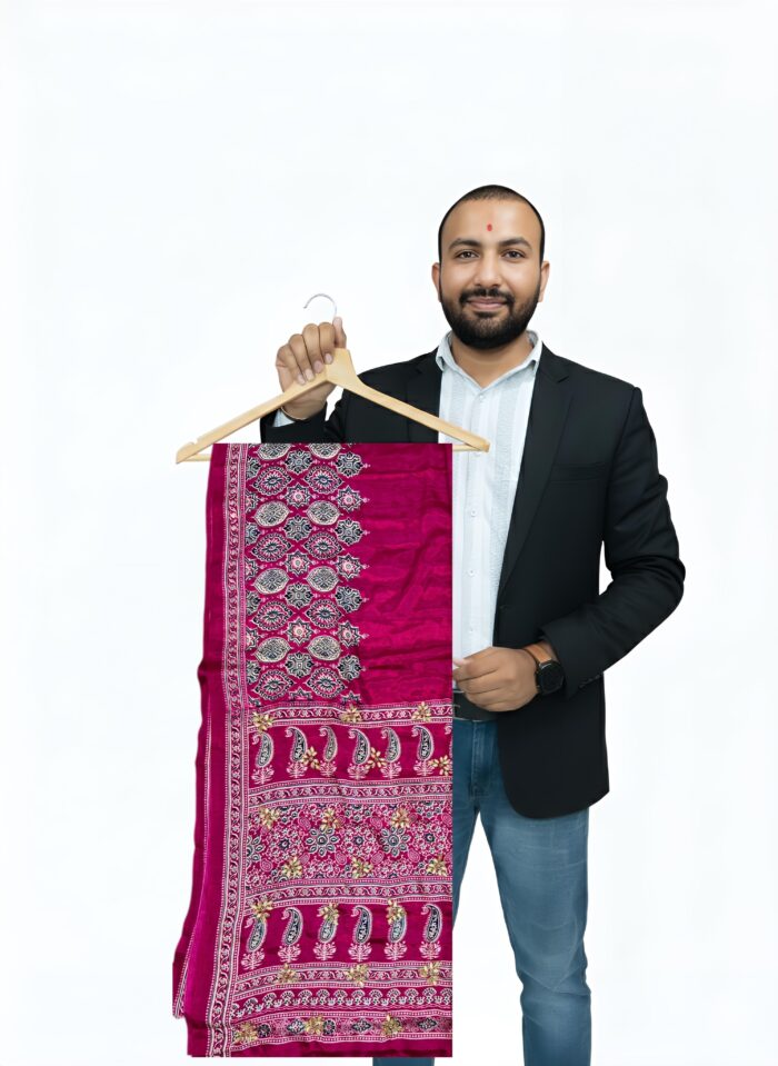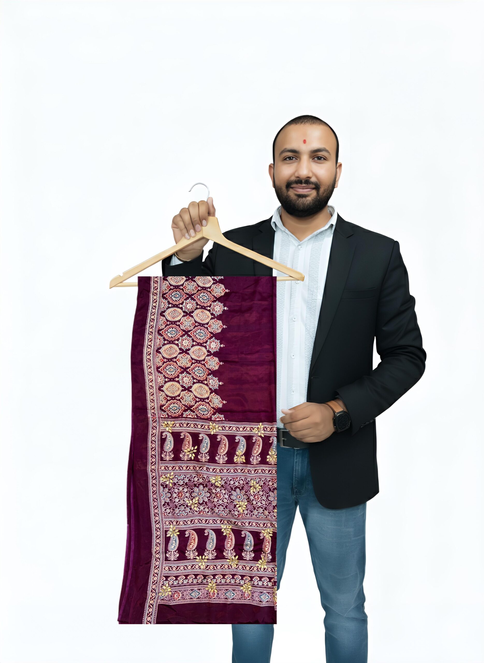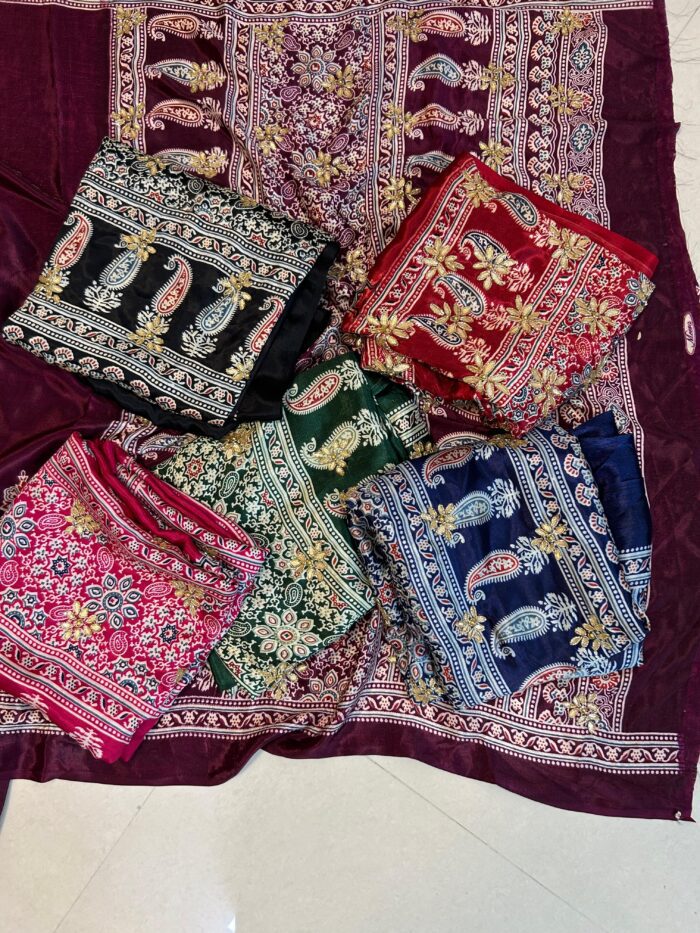 A beautiful and luxurious Soft Silk Saree featuring intricate traditional gota pati wrok with prints, giving it a rich and ethnic appeal. The fabric is lightweight and drapes effortlessly, making it perfect for both daily wear and special occasions. The vivid colour combinations make this saree a standout piece.