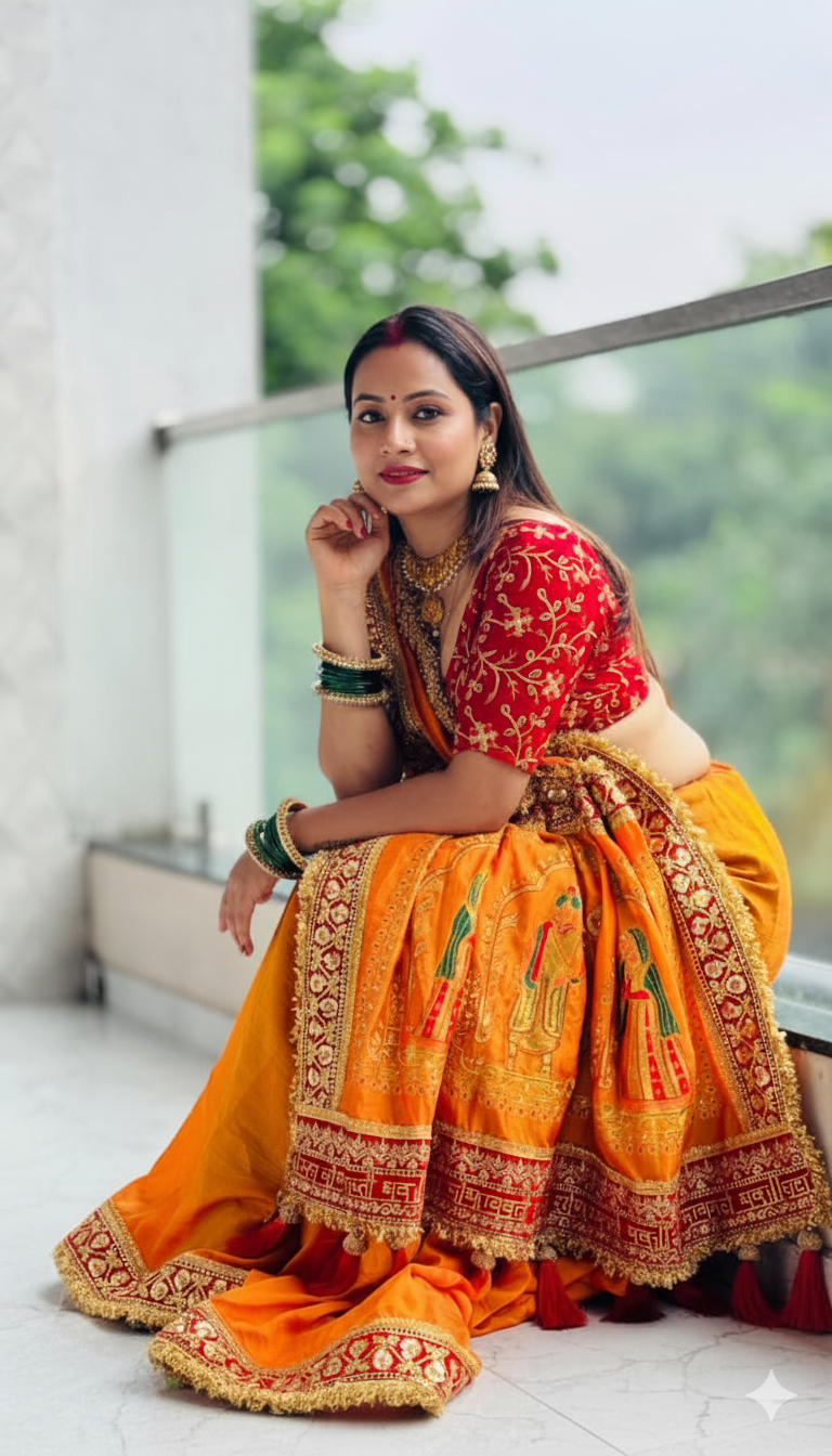 Be the first to review “pure paneter saree yellow and red color for women kgm brand” Cancel reply
