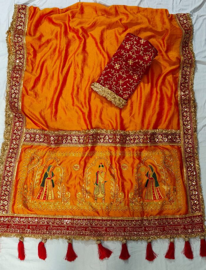 Pure Gota patti With Ajrakh Print Soft Silk Saree for women kgm brand ₹2,999.00 Original price was: ₹2,999.00.₹999.00Current price is: ₹999.00.