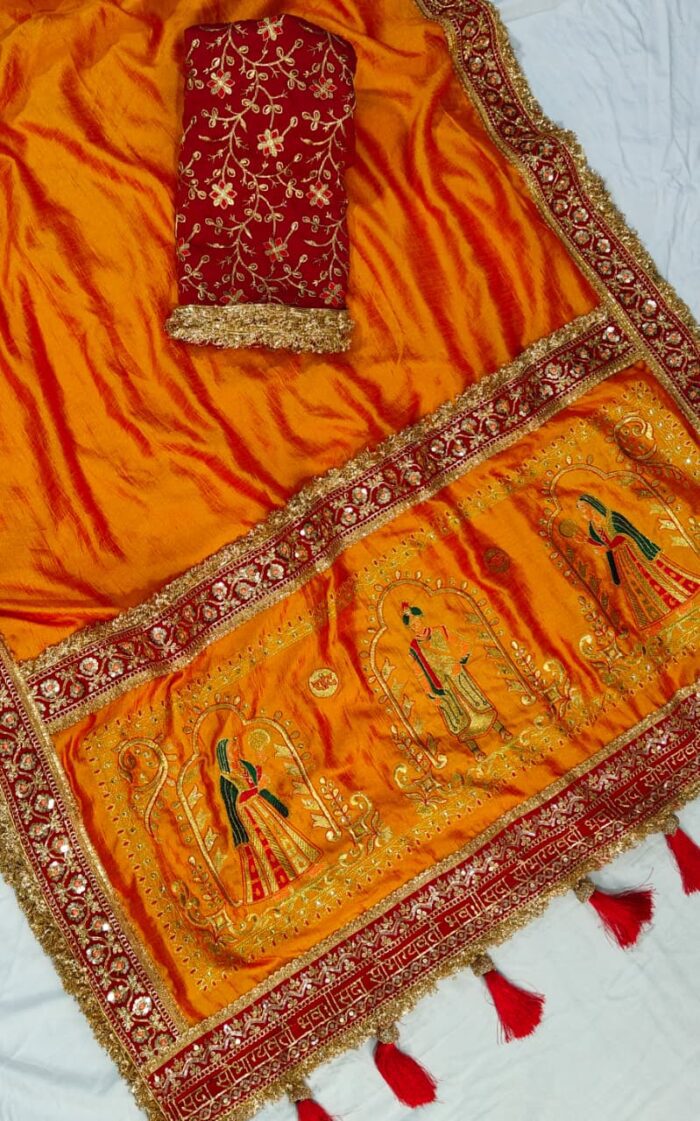 Pure Gota patti With  Ajrakh Print Soft Silk Saree for women kgm brand