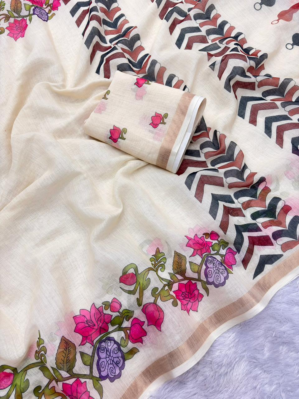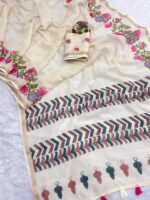 Quality: soft linen with designer pallu with Heavy tassels and designer blouse.