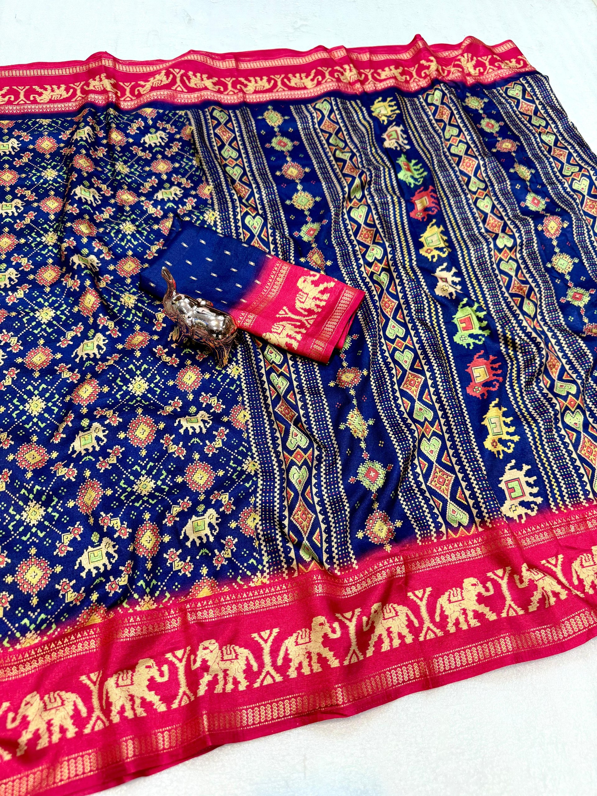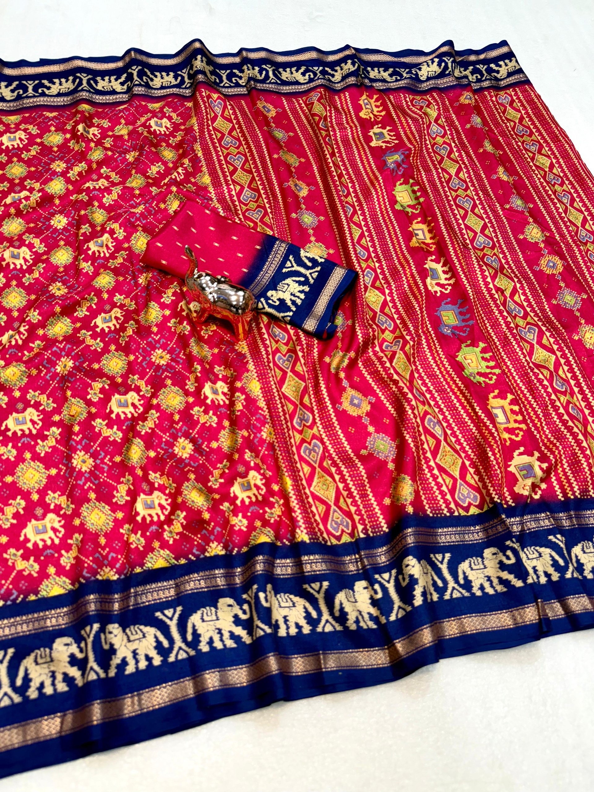 Fabric – Pure soft Tusser Patola printed saree with Rich Pallu & gadwal viscose border