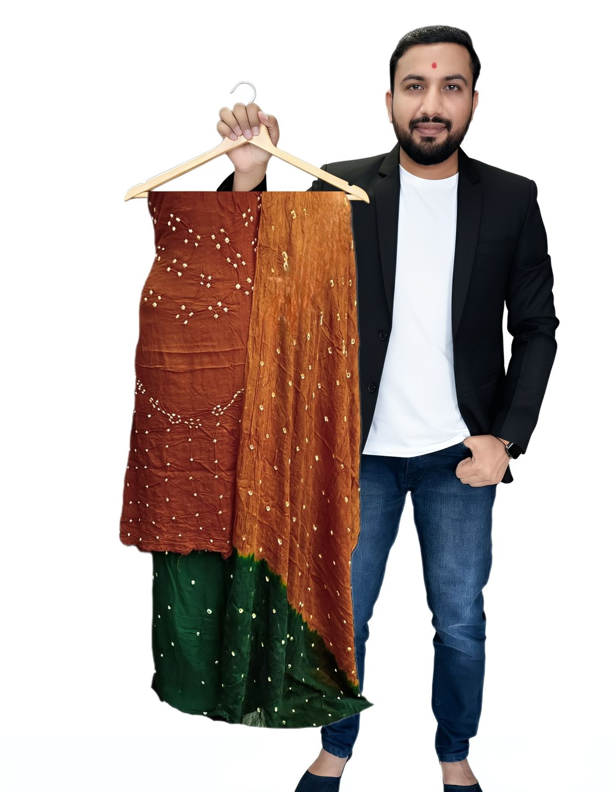 *KGM BRAND Presenting our Collection of Creative Bandhej Bandhani, Jequrd, Suit, Panatar, Patola This Saree Will Surely Give You an Outshining Graceful Look That Will Attract The Attention Of One and all. Apt for any heavy wear – sangeet, wedding collection, family functions. Pair it with heavy beads – and you are all set for a glamorous fascinating look