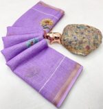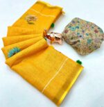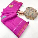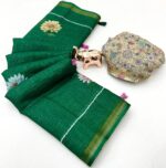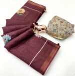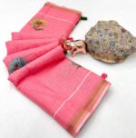 Linen Cotton Sarees with Blouse – Pista, Blue, Sky Blue, Black, Pink