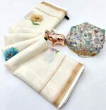 Lightweight soft Linen Saree - Hand-Painted Style Floral Print Pallu & Motifs kgm brand