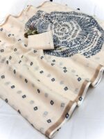Pure Linen Cotton Batik Print Saree for Women – Handcrafted Elegance kgm brand – CREAM