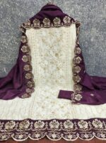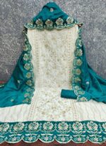 Heavy Zari Work: Intricate gold-toned Zari embroidery covering the entire top and borders.