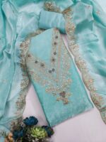 Georgette Multi Sequence Work Unstitch Dress Materials Pakistani suit blue