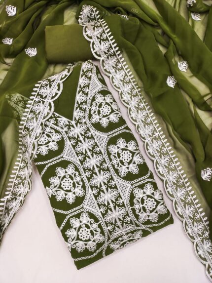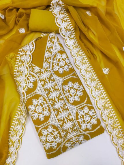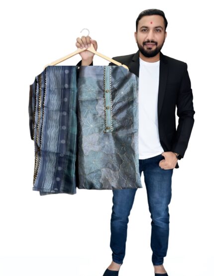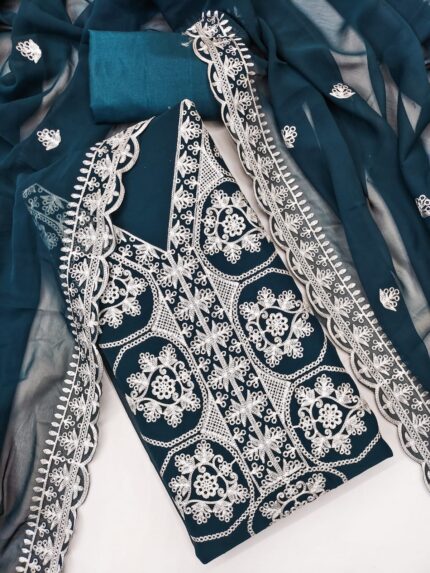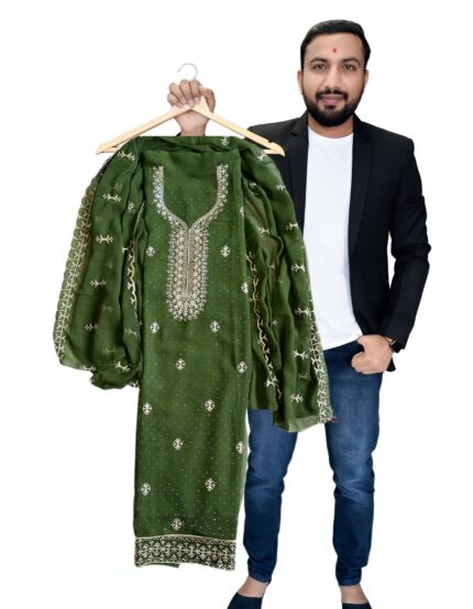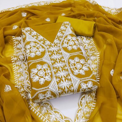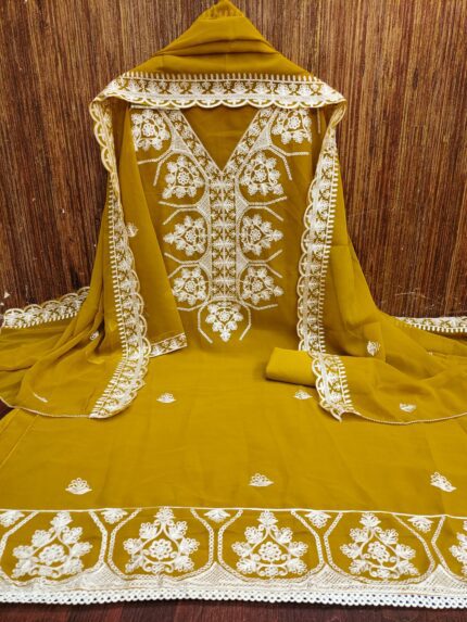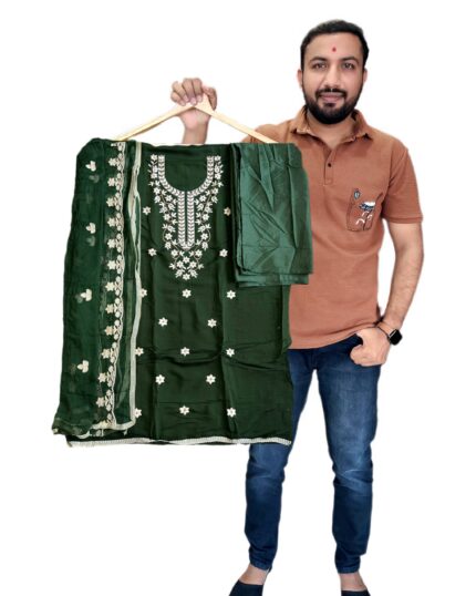 Premium Georgette Suit Set with Multi-Color Aari Work Dupatta kgm brand