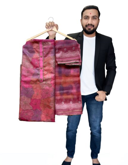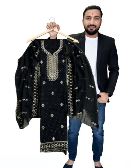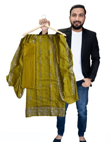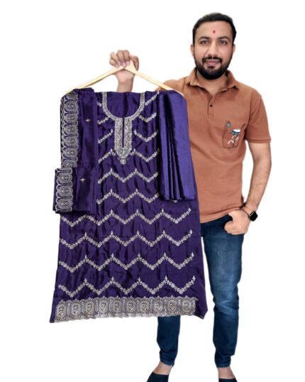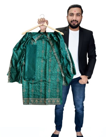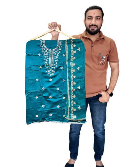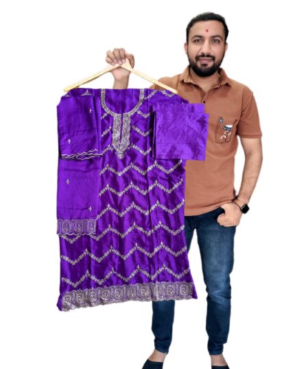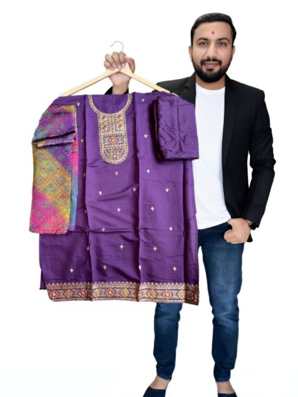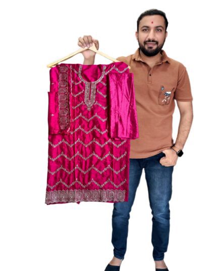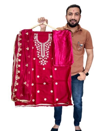 Designer Vichitra Silk Salwar Suit Set with Heavy Santoon Bottom & Matching Dupatta with embroidery work for kgm brand