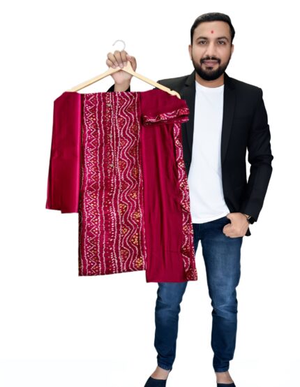 Pure Cotton Bandhani Dress Material with Gold Print Work – Unstitched Salwar Suit kgm brand