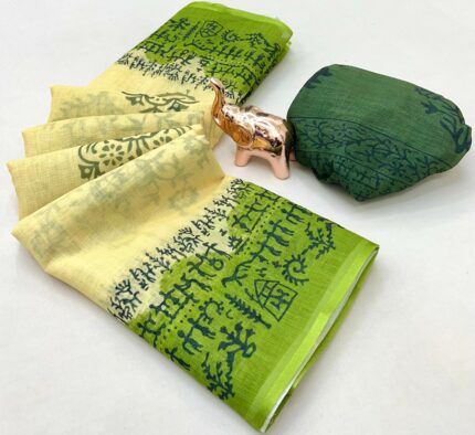 Soft Linen Batik Saree with beautiful Digital print kgm brand