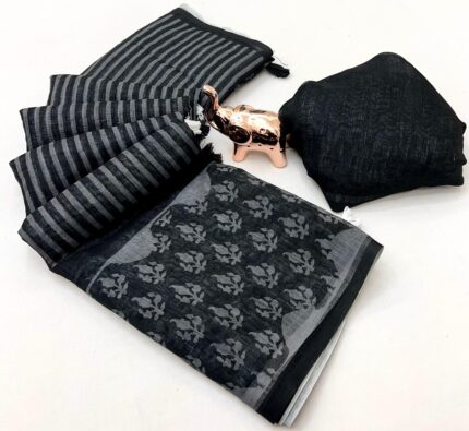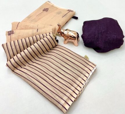 “Designer Printed Soft Linen Saree – Lightweight & Smooth Fabric Collection” kgm brand