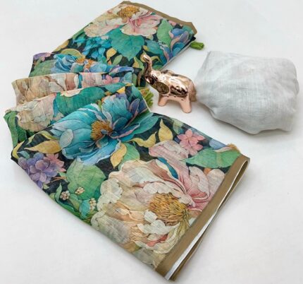 Soft Linen Batik Saree with Digital Flower Printed and Lightweight Saree kgm brand