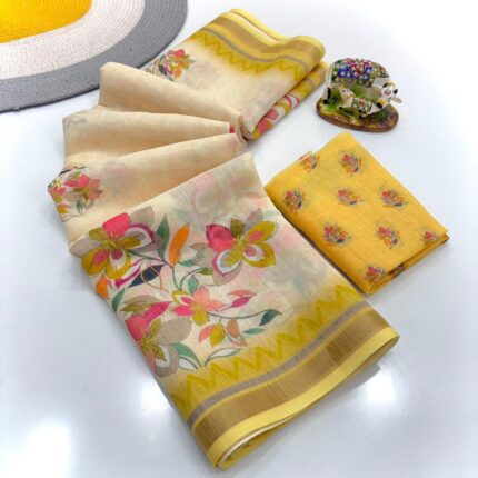 Soft Linen Printed Saree Collection: Lightweight, Smooth & Designer Prints kgm brand