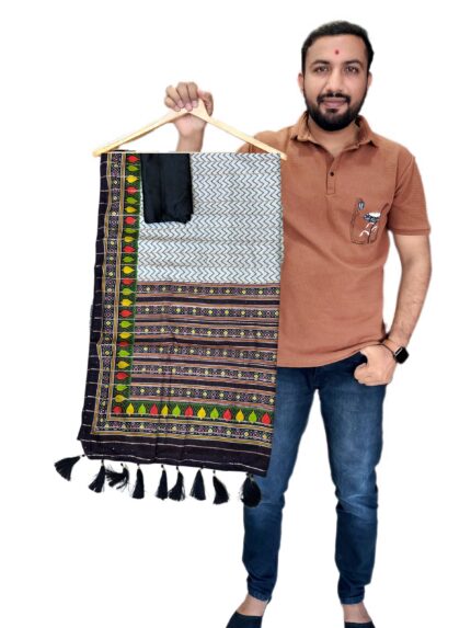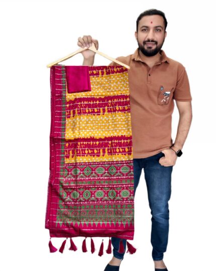 RED GREEN Chanderi Cotton Pure Viscose Digital Print Saree with Piping Lace latkan & Silk Blouse kgm brand